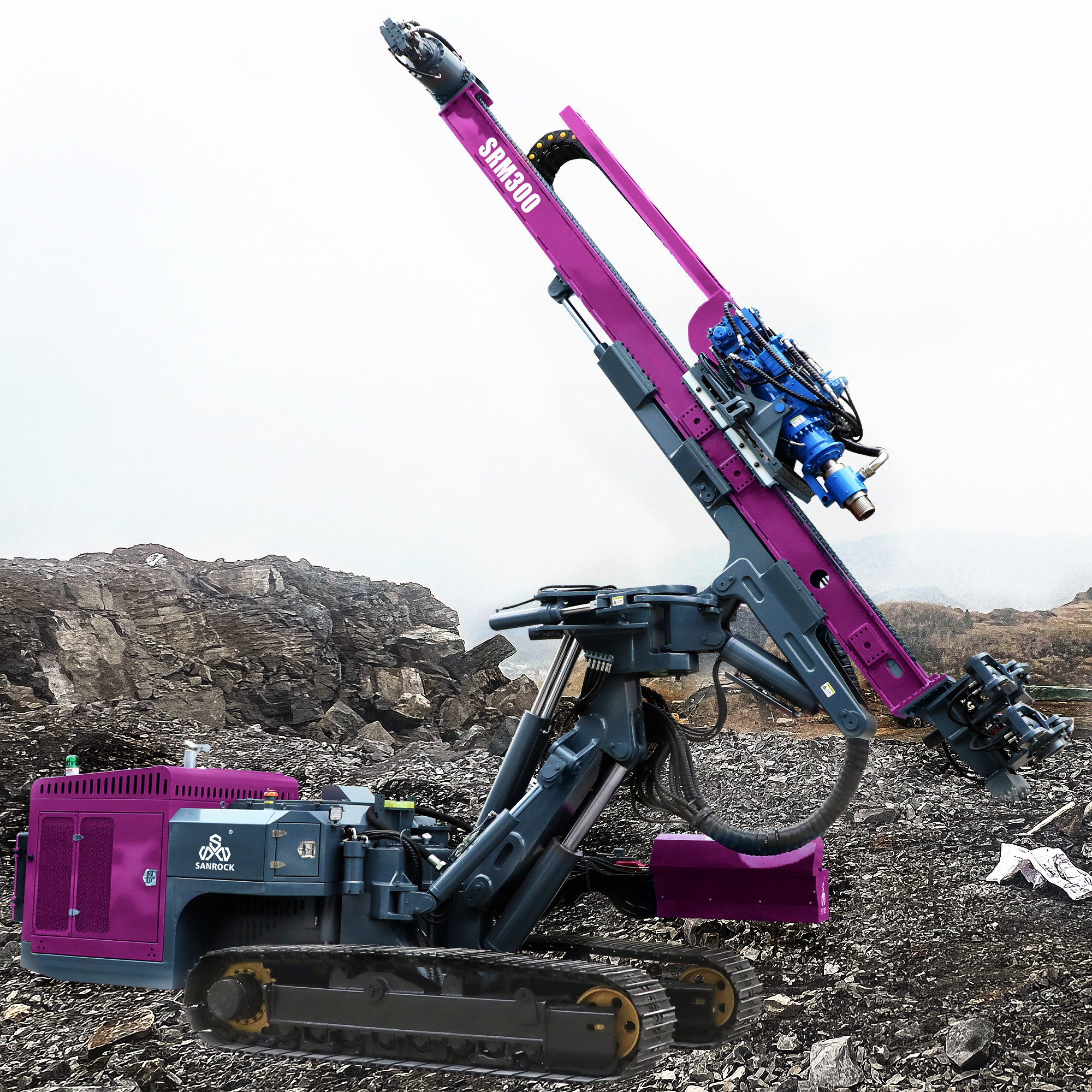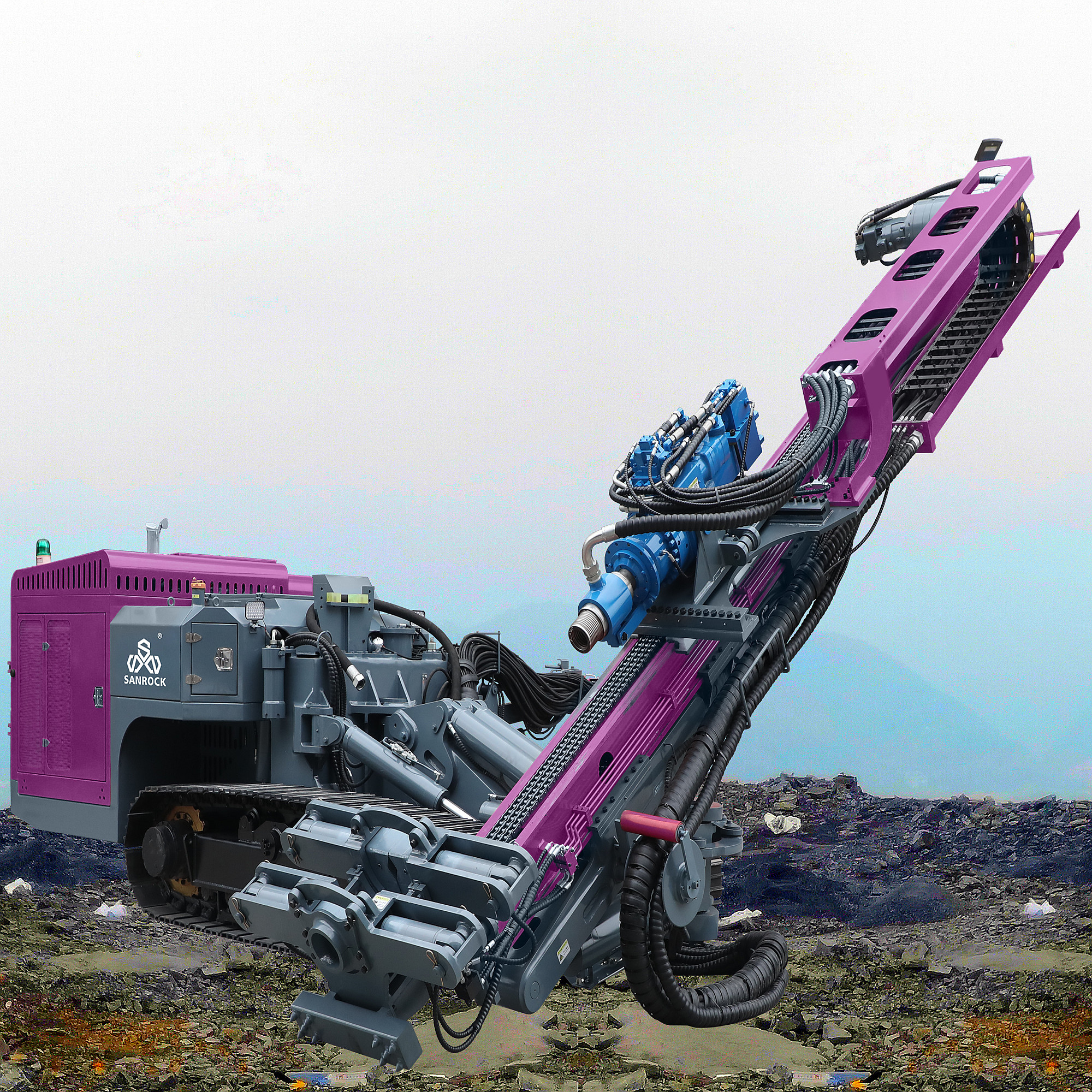 The defining feature of this rig is its ability to perform 360° continuous rotation. This allows the operator to drill a full circle of blast holes from a single stationary position, eliminating the need for repetitive and time-consuming repositioning of the entire machine. This significantly boosts operational efficiency and allows for the precise execution of complex drilling patterns.